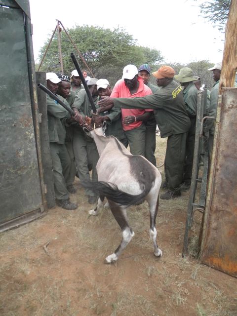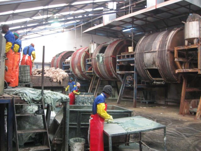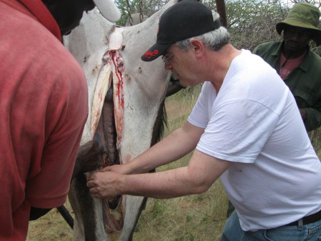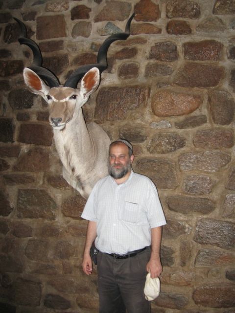 Parchment and horn factory. Holding a Kudu skull . Kosher for shofar